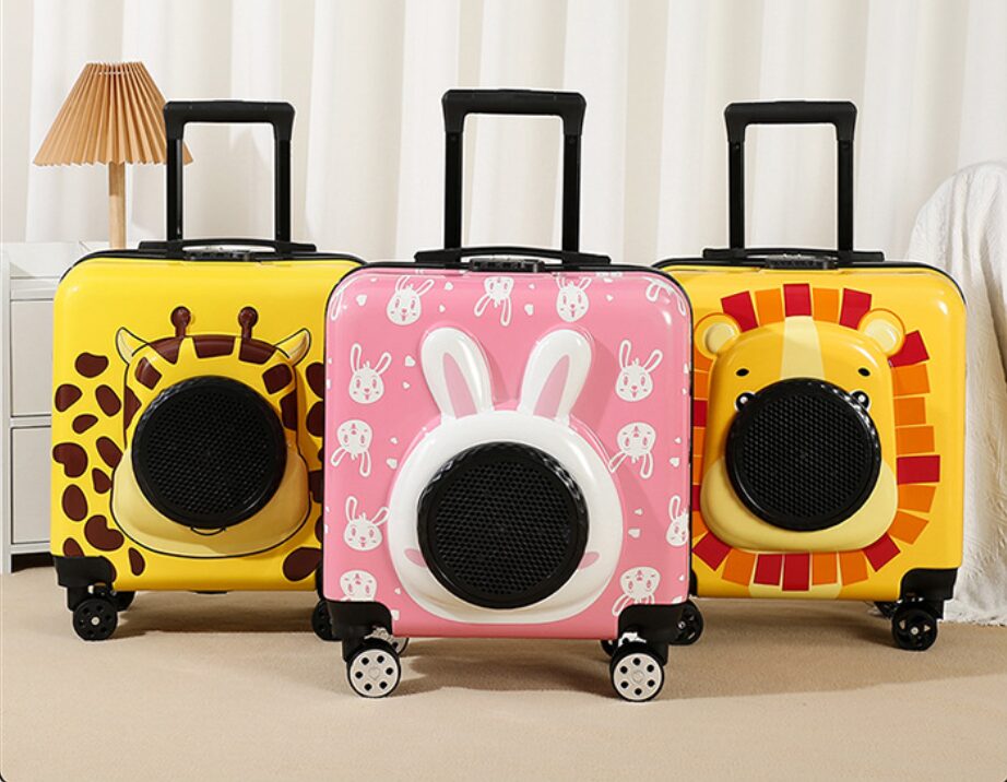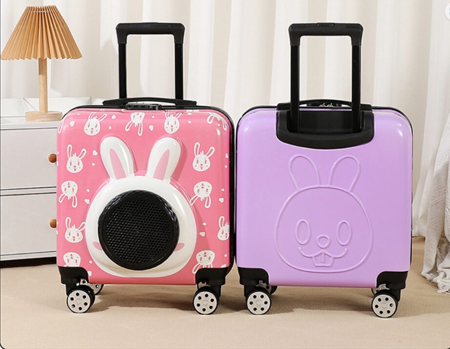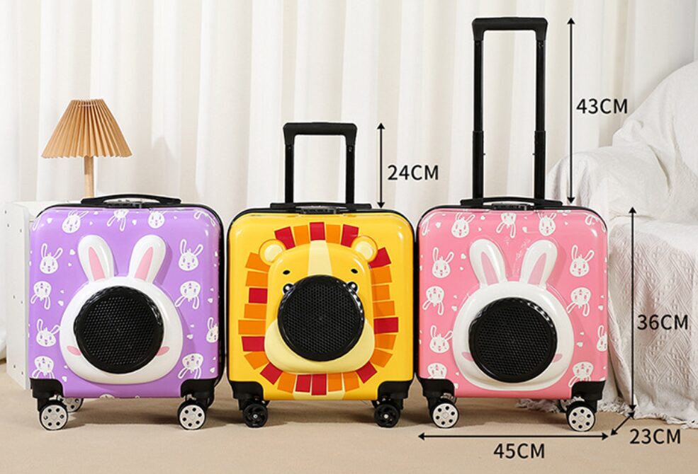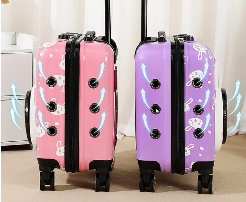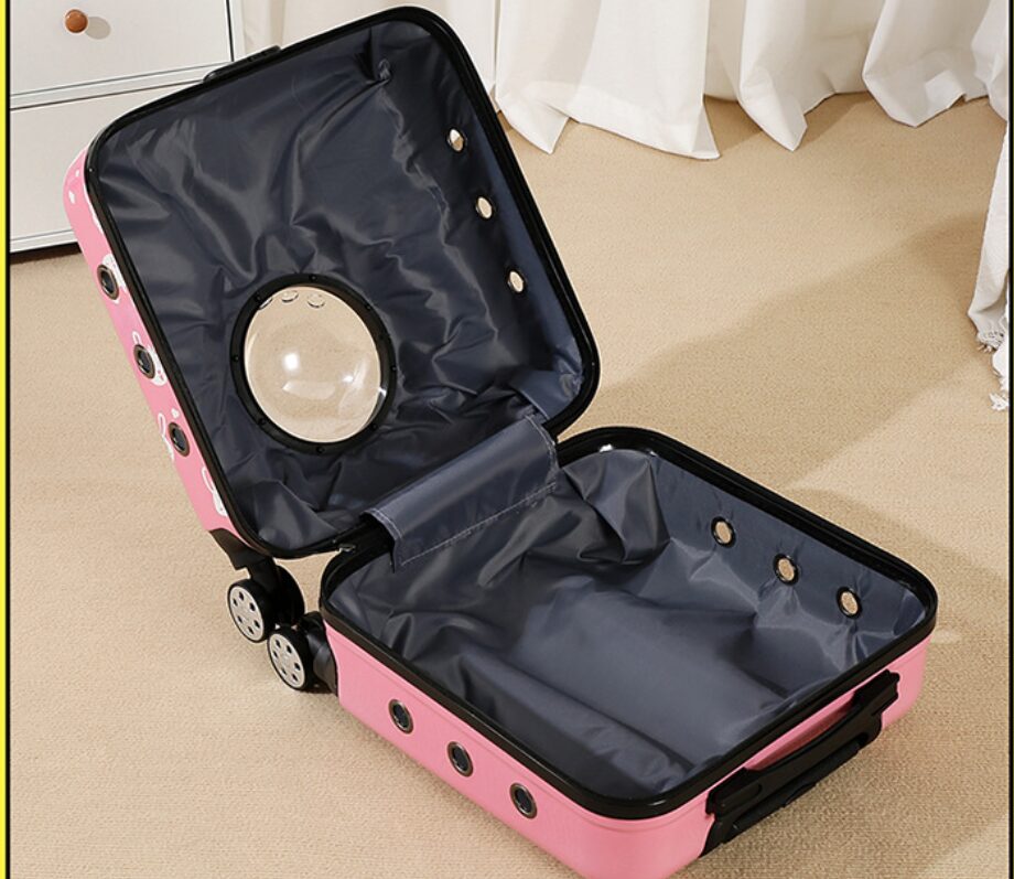 This pet rolling carrier is designed with an adorable appearance. The large transparent window offers your pet a sense of security and comfort during travel.