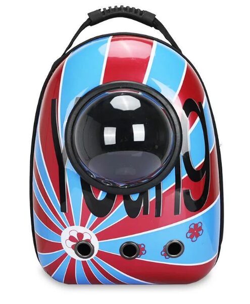This backpack is available in various colors and patterns. It features five-sided ventilation, including the bottom, to ensure good airflow. The comfortable handle and side mesh panels enhance the user experience, while the soft bottom padding adds extra comfort for your pet.
